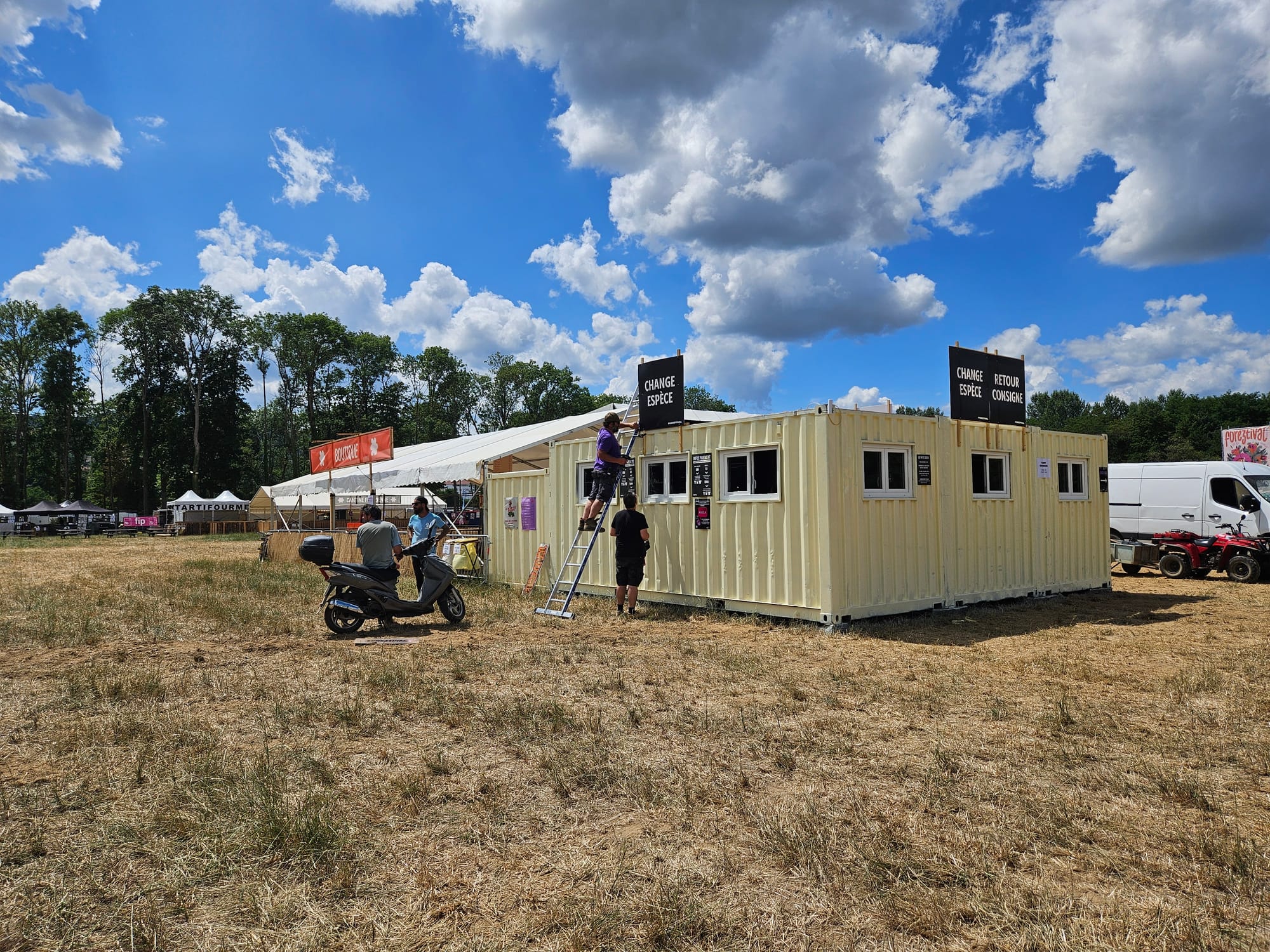 Pendant ce temps-là l'installation se poursuit. Derniers réglages, dernières mises au point : tout doit être tout-prêt-tout-beau à 17 heures...